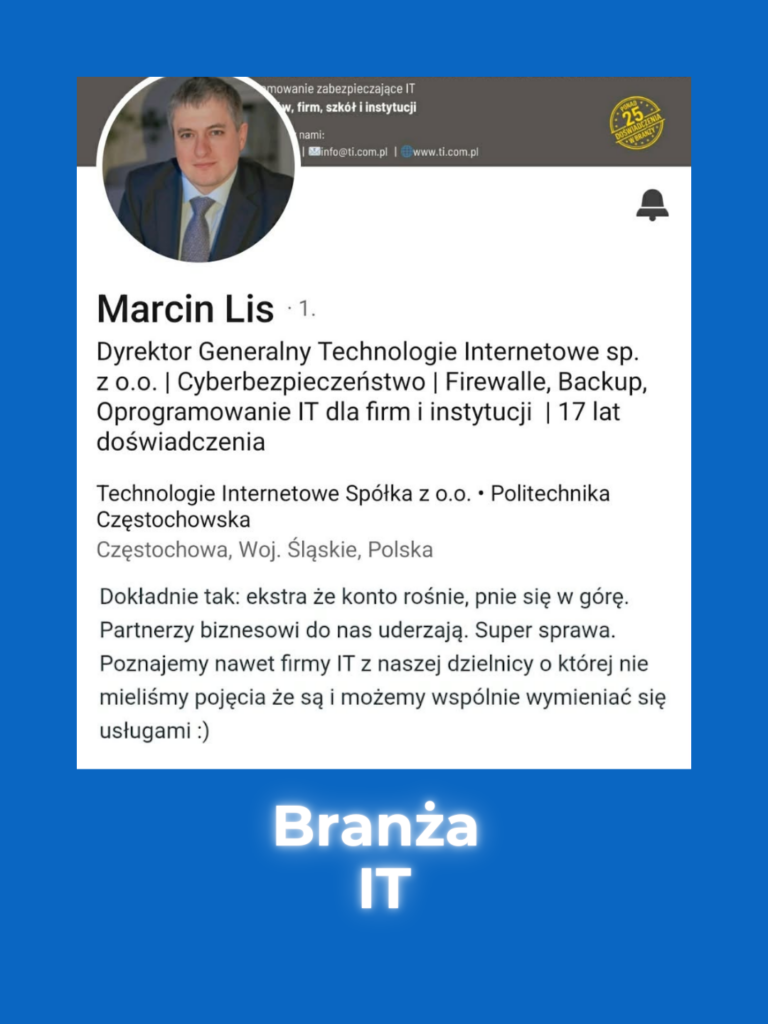Na LinkedIn są przedsiębiorcy, menedżerowie i osoby decyzyjne. To miejsce, gdzie często zaczynają się rozmowy, które później kończą się współpracą.