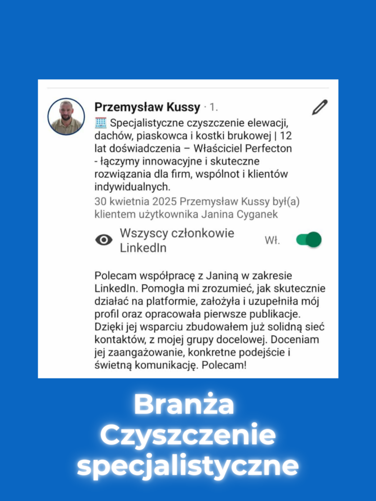 Każdy profil, komunikacja i działania dopasowuję do Twojego doświadczenia i branży w której działasz.
